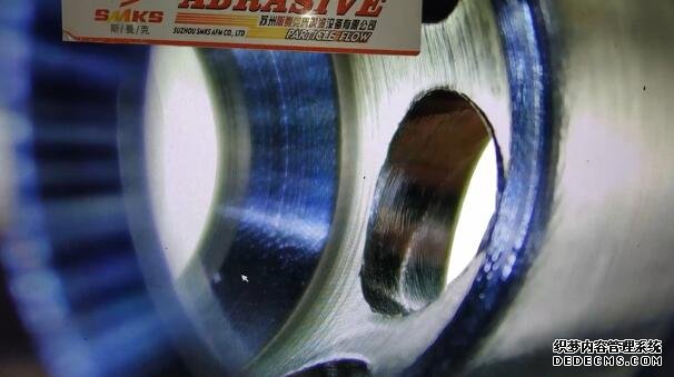 去毛刺過程中,碳化硅軟磨料同時從所有小孔擠出,壓力為1-6兆帕,毛刺被研磨成非常細(xì)的微粉隨磨料流出。